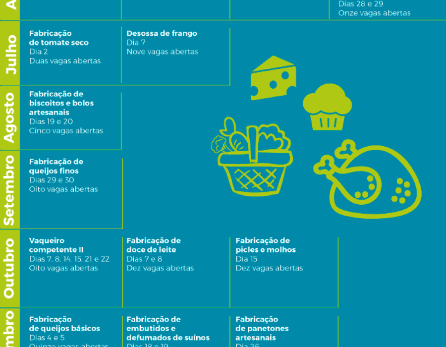 O calendário é anual, de fevereiro a dezembro — apenas os cursos com início a partir de abril ainda têm vagas disponíveis. Há capacitação nas áreas de segurança alimentar, processamento de alimentos, fabricação de alimentos e bebidas, gestão e comercialização. Para se inscreverem, produtores, agricultores e outros interessados nos cursos devem procurar alguma das unidades da Emater no DF e Entorno.