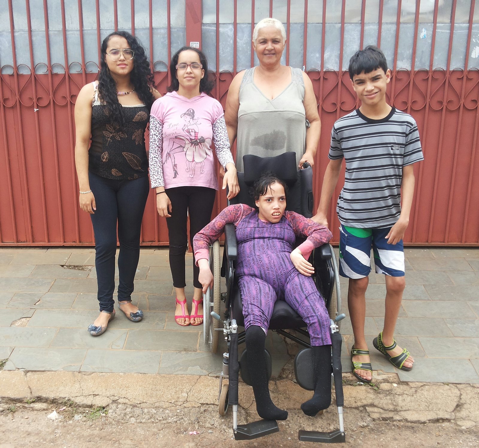Todas as crianças nasceram com lesão cerebral, sendo que uma delas não anda e não fala, as demais crianças tem lesões motoras e precisam de cuidados especiais. A família mora em Taguatinga Sul,